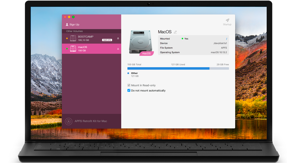 If you work on a Mac computer with macOS 10.10 to 10.12 and want to read APFS-formatted HDD, SSD or flash drives, you need APFS Retrofit Kit for macOS by Paragon Software.