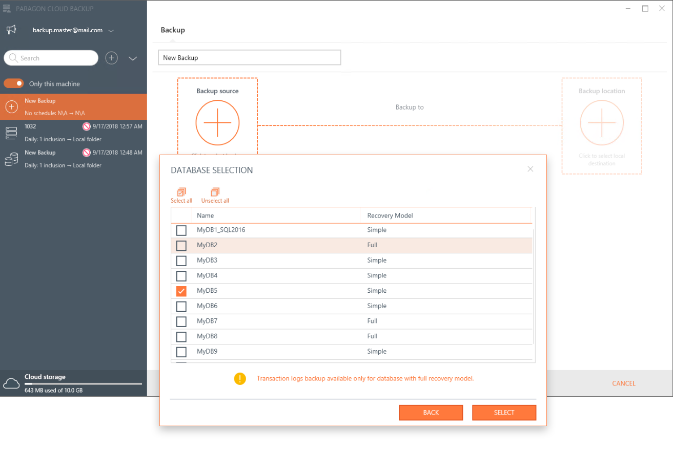 Paragon Backup for Microsoft SQL gives you options: