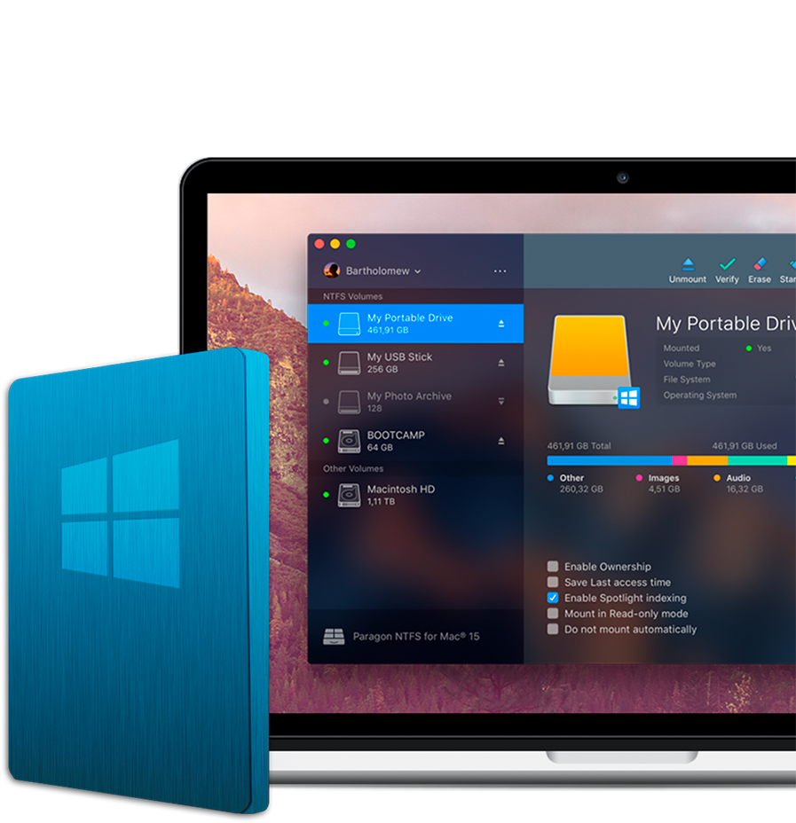 Easily convert the file system on the external storage device to NTFS and use it on Windows PC or convert your desired NTFS volumes to HFS+ volumes, and easily access the data from a Mac.